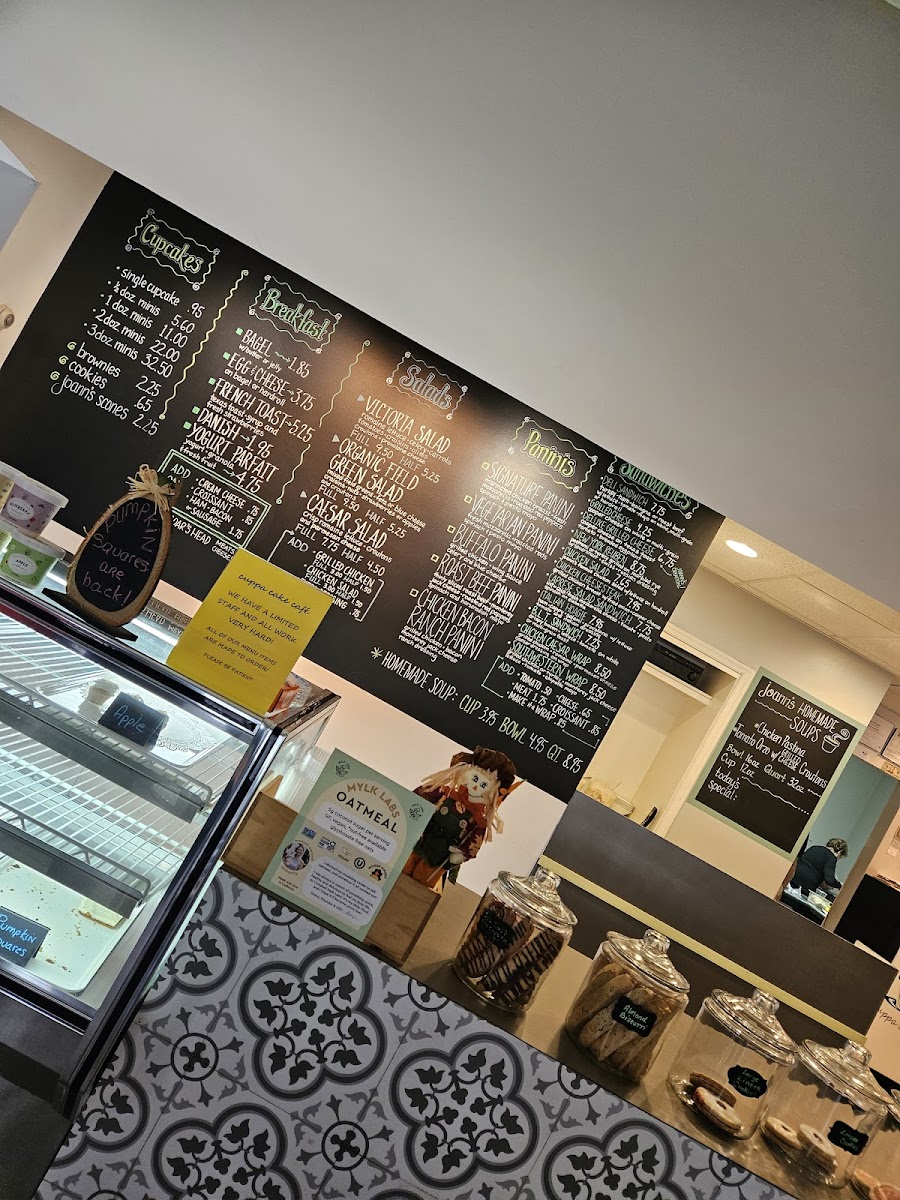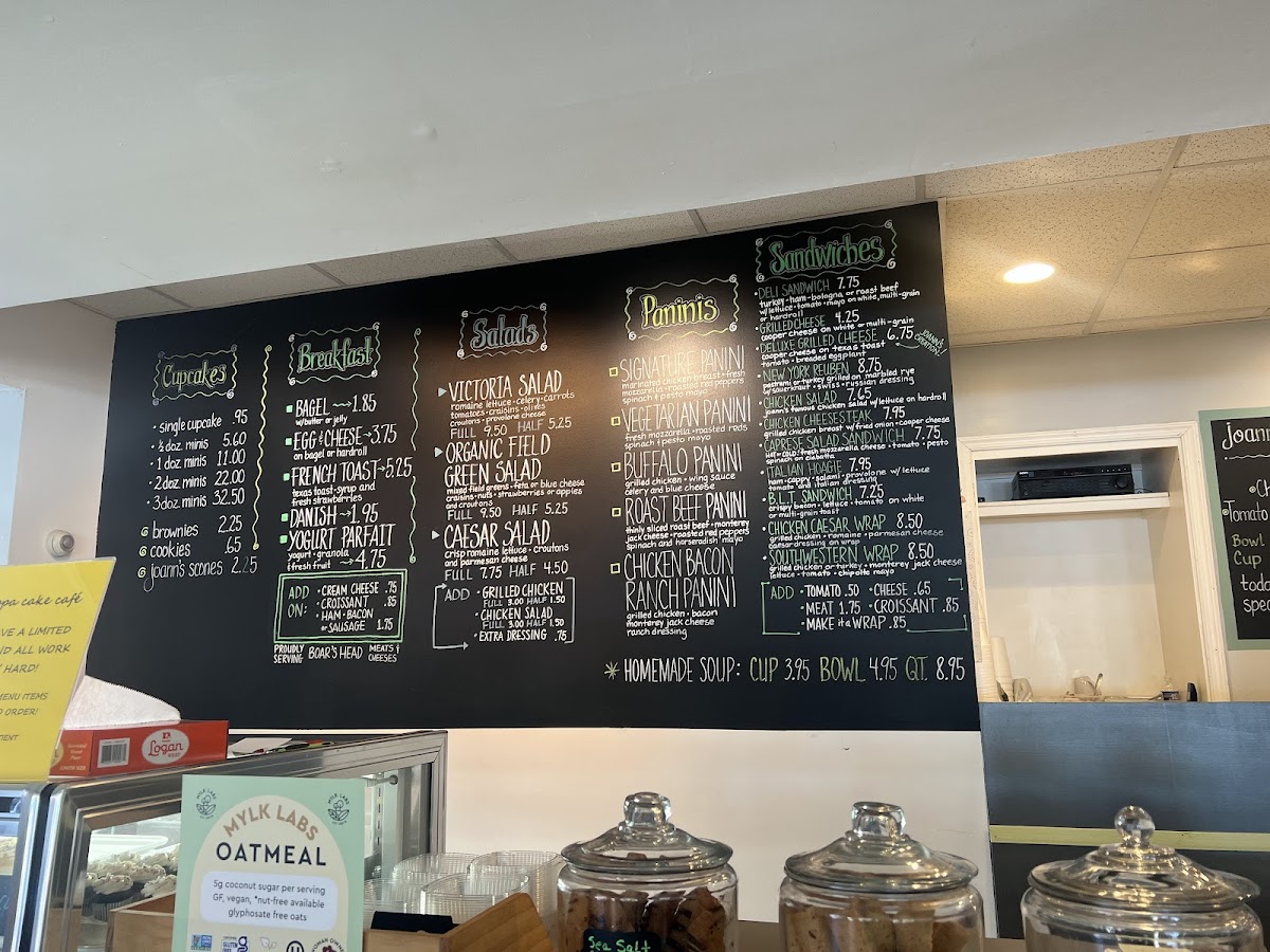 Overall, the menu at Cuppa Cake Cafe offers a simple yet satisfying range of options that cater to both sweet cravings and light savory meals. The breakfast selection, including the Bagel, French Toast, and Yogurt Parfait, provides comforting and familiar choices to start the day. For something fresher, the salads-such as the Victoria Salad, Organic Field Green Salad, and Caesar Salad-deliver lighter, wholesome alternatives. The panini lineup stands out with a variety of flavors, from the Vegetarian Panini to the more indulgent Signature Panini, Buffalo Panini, and Roast Beef Panini, each offering a hearty and convenient bite. Beyond these, the cafe embraces its dessert roots with treats like the Single Cupcake, 3doz.minis, and Cookies, while also featuring more filling options like the New York Reuben and Deli Sandwich. Though prices aren’t listed, the menu feels approachable and balanced, making it an appealing stop for both a quick snack and a casual meal.